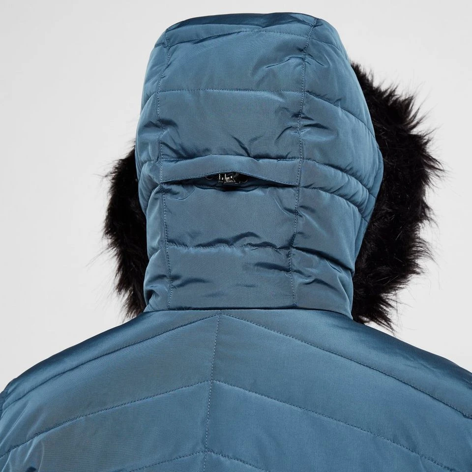 The padded silhouette is on-trend and lined with high warmth padding for extra warmth and comfort. The hood comes with a detachable faux fur trim which makes for easy washing.
