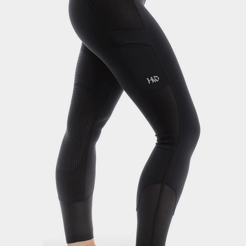 From Horsewareâs Active Collection come these superb Silicon Riding Tights which combine function and form for everyday activities at the stable or outdoors. The streamlined design is lightweight and breathable with cool mesh side panels and an anti-bacterial finish to manage moisture effectively. The smooth self-fabric high-waist guarantees a great fit while Silicon knee and inside leg patches improve grip in the saddle. 30 UPF sun protection makes these multi-functional riding tights a great summer staple at the stable.