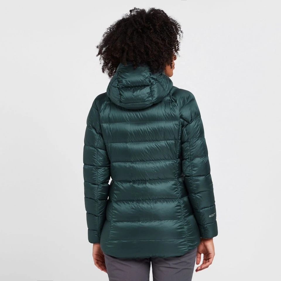 Featuring both recycled outer fabric and recycled down lining with PFC-free DWR, the Women’s Anti-Freeze XT Hooded Down Jacket is made with sustainability in mind. The jacket packs away easily into its own stuff sack.