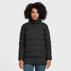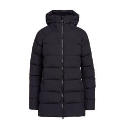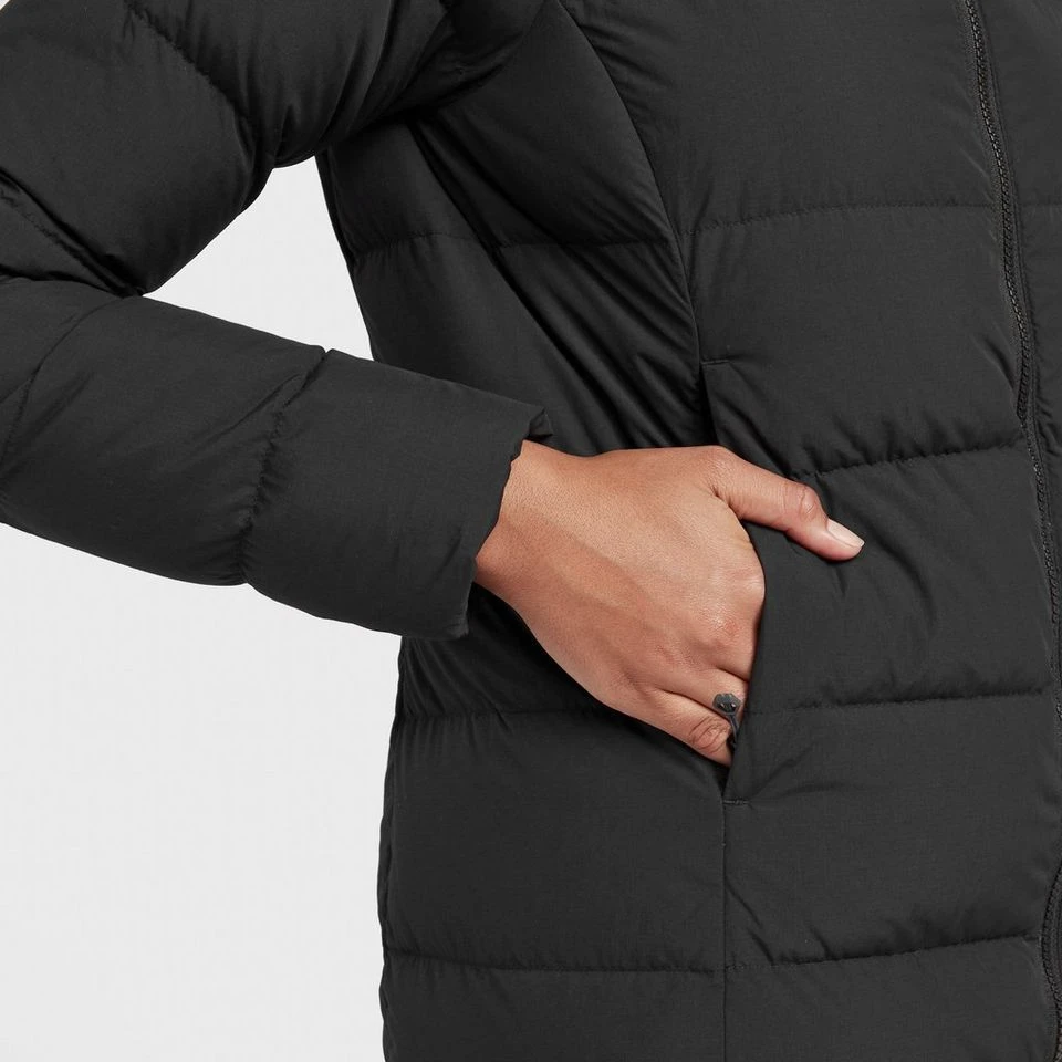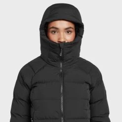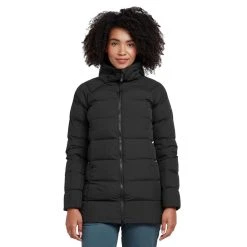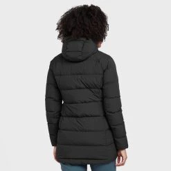 The jacket comes with an adjustable insulated hood to fit snug to your head and an adjustable waist drawcord to lock in heat to provide you with a flattering fit. There are two zipped hand pockets to safely carry your essentials.