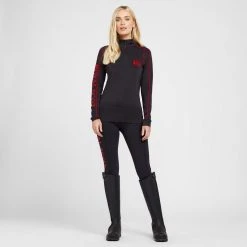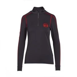 The women’s long sleeve base layer features contrast flatlock seams with seamless shoulders to reduce abrasion while you move, as well as a 1/2 zip to improve ventilation when working up a sweat.